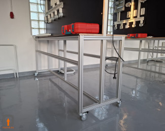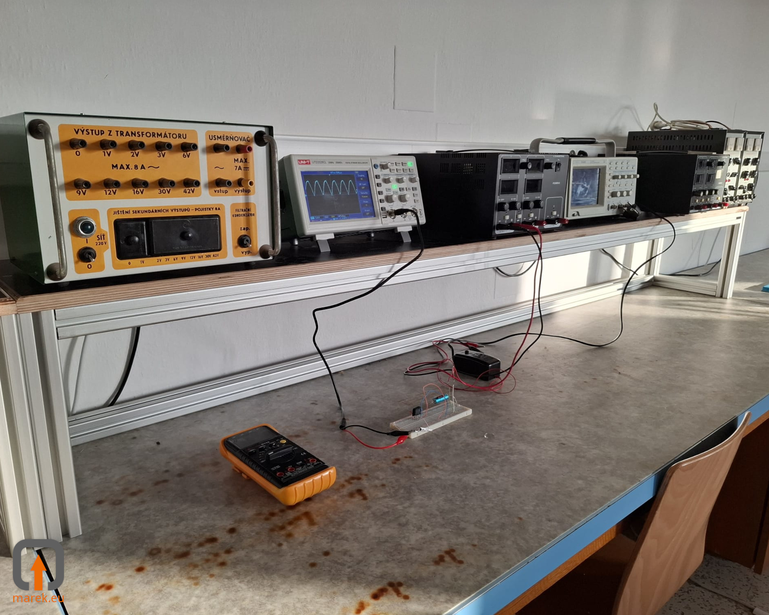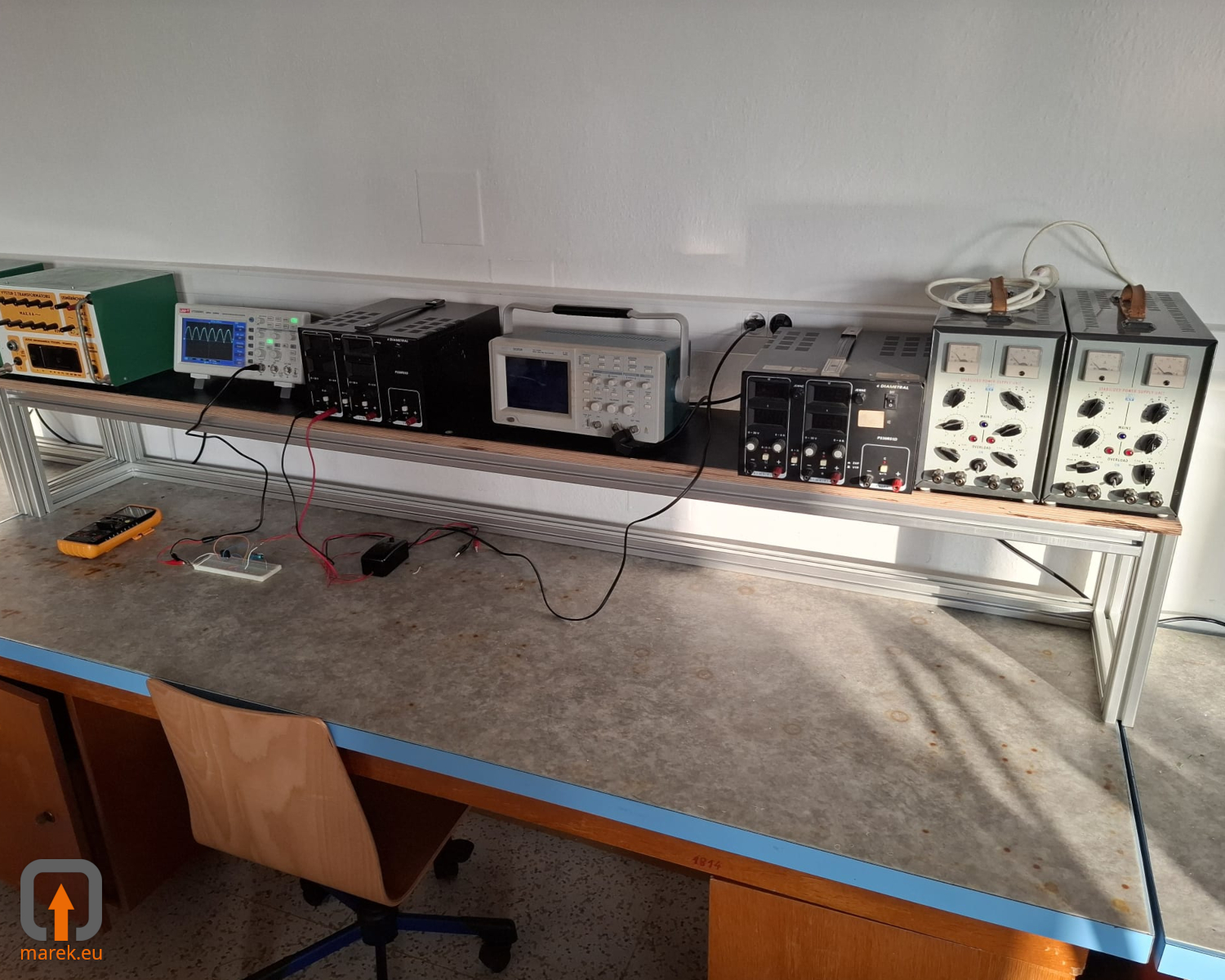 A když už se skládá z profilů, byla by škoda nevyužít jejich potenciál naplno. Proto vznikly i funkční police pro osciloskopy a laboratorní zdroje, které uvolnila místo na pracovních stolech.