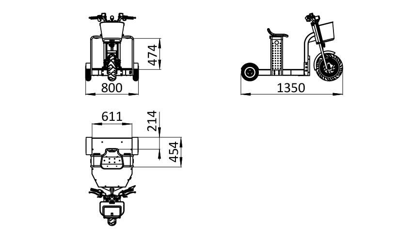- Electric transport tricycle for fast indoor and outdoor mobility and for transporting materials, boxes, or tools