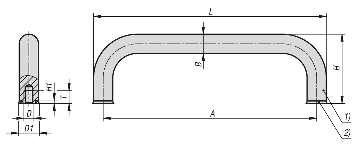 Pull handles, stainless steel with seal washer in Hygienic DESIGN