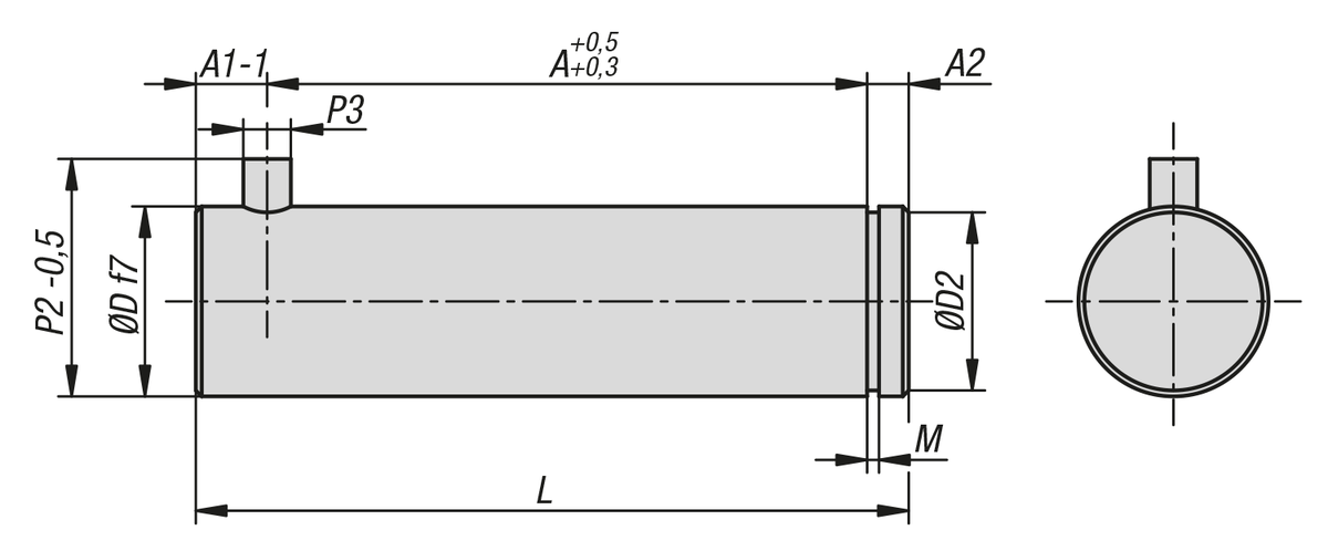 Datový list norelem 12021–91 Osové čepy s pojistkou proti pootočení pro ISO 15552 / 21287