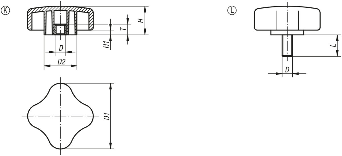 Datový list norelem 06855 Čtyřcípé ovládací prvky ploché