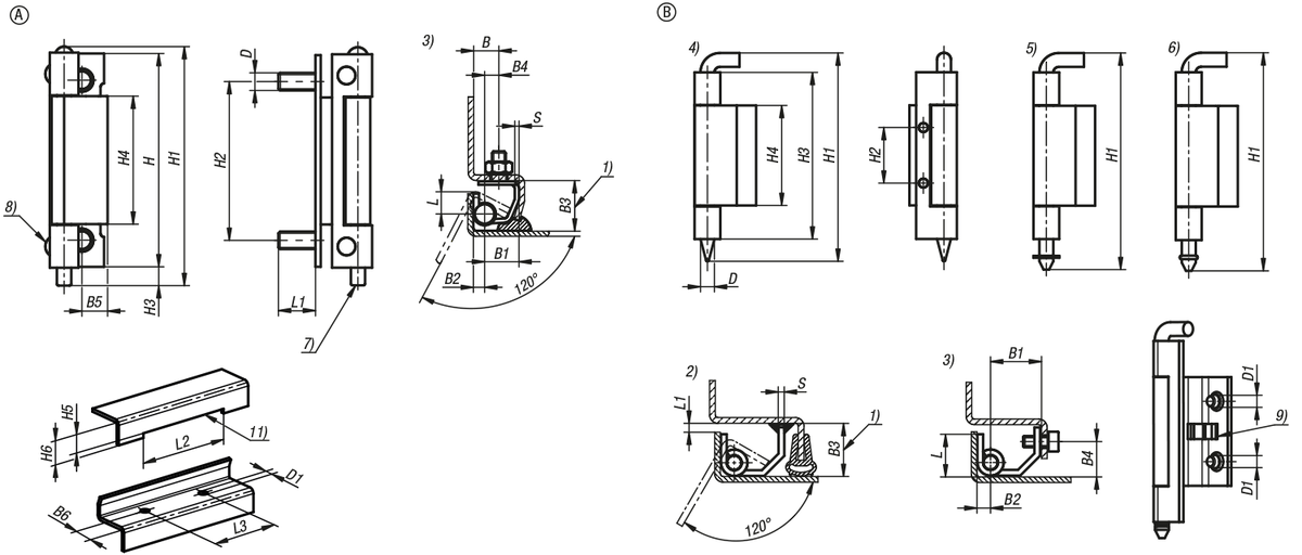 Concealed hinges steel or stainless steel, folded edge up to 20 mm