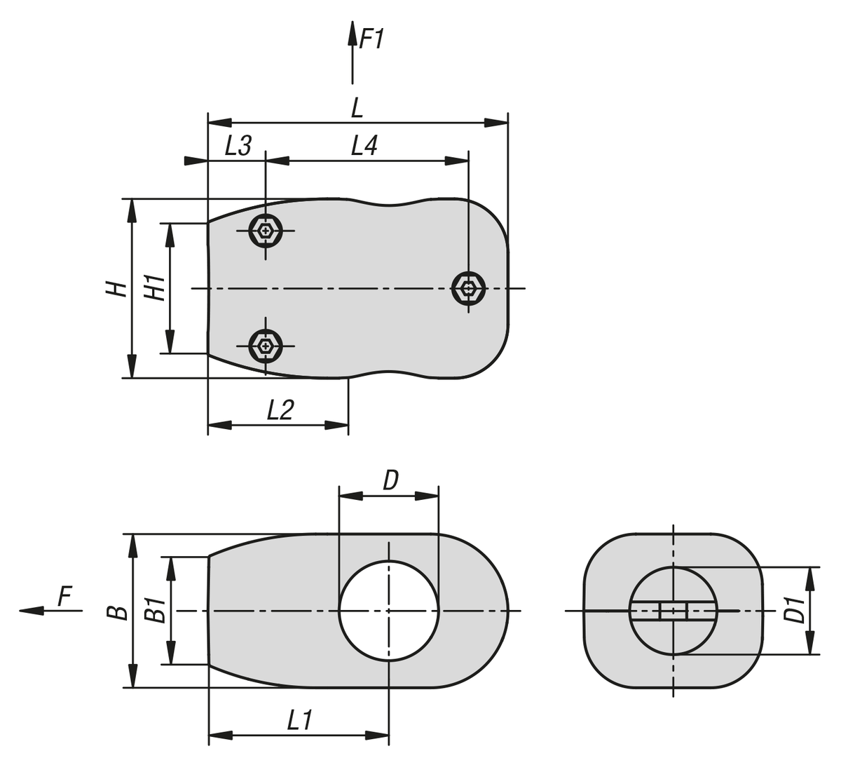 | Objednací kód | Základní cena bez DPH | Objednat | D | B | B1 | D1 | H | H1 | L | L1 | L2 | L3 | L4 | F max. kN | F1 max. kN | CAD |