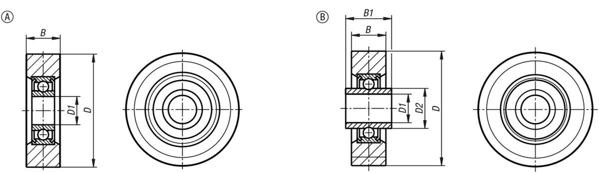 Datový list K2372 Vodicí válečky z plastu, válcové bez čepu