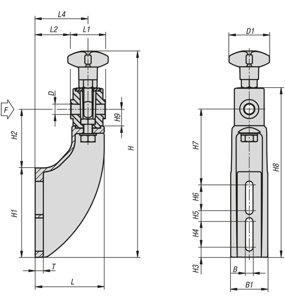 | Objednací kód | Základní cena bez DPH | Objednat | B | B1 | D | D1 | H | H1 | H2 | H3 | H4 | H5 | H6 | H7 | H8 | H9 | L | L1 | L2 | L4 | T | F max. kN | CAD |