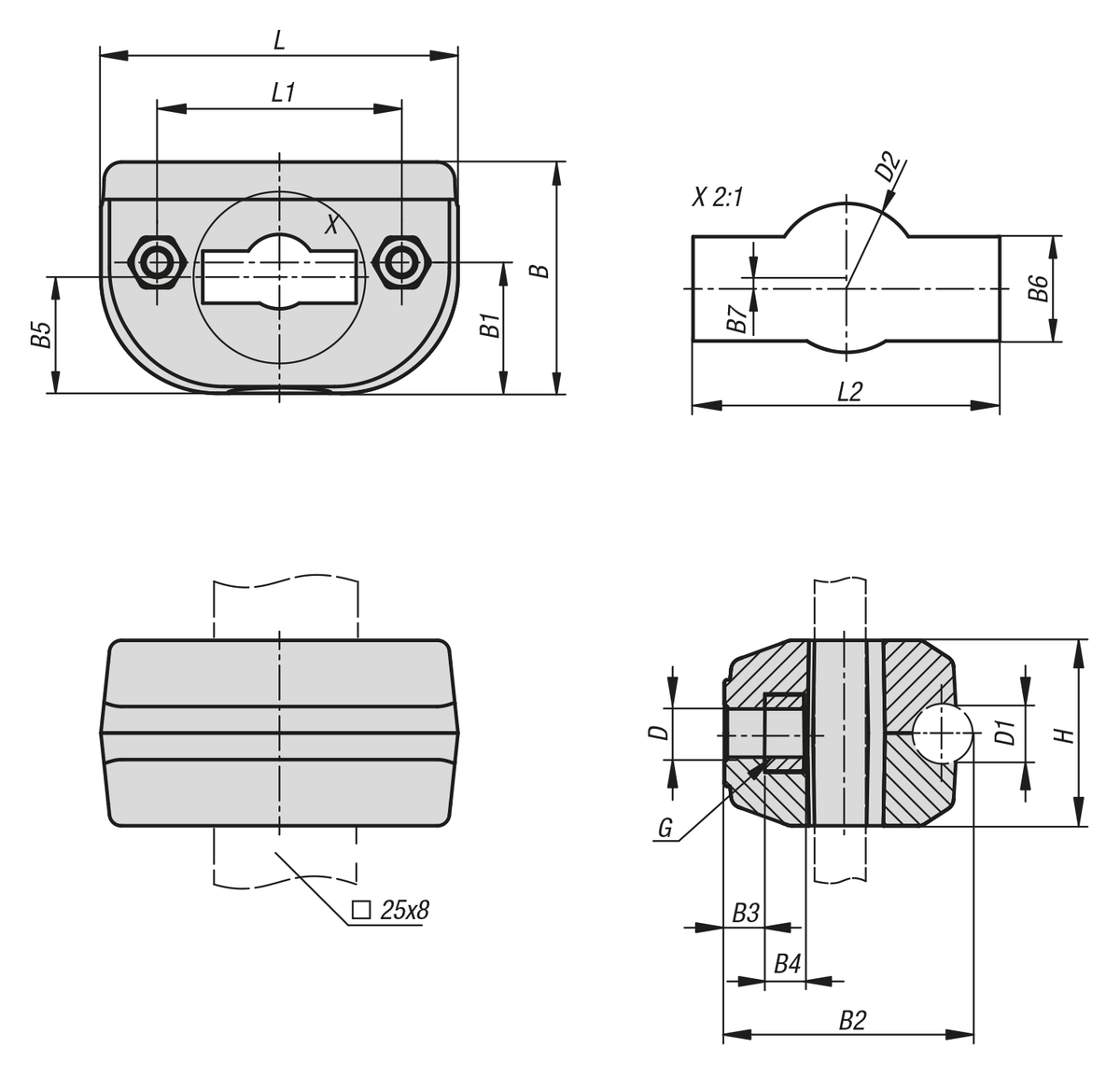 Datový list K2299 Jednoduché svorky z plastu pro ploché oceli pro kulatá boční vedení