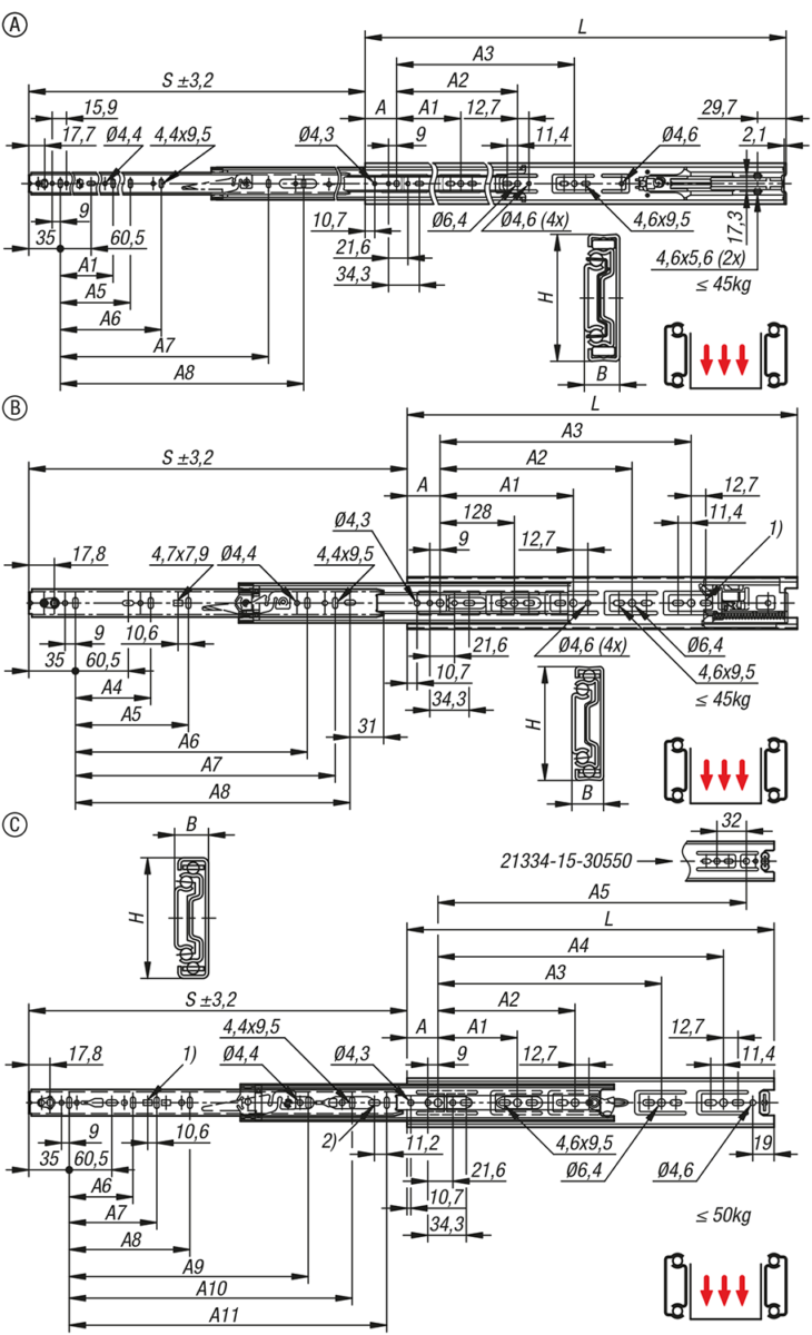 | K2381.10500 | 923,30 Kč | 1 117,19 Kč | 500 | A | Soft close | Montáž boční | standardní | 45 | 1 kus = 1 pár | 35.1 | 128 | 224 | 320 | — | — | — | 409 | 12.7 | 45.7 | 508 | — | — | — | — | — | — | — | — | — | ||