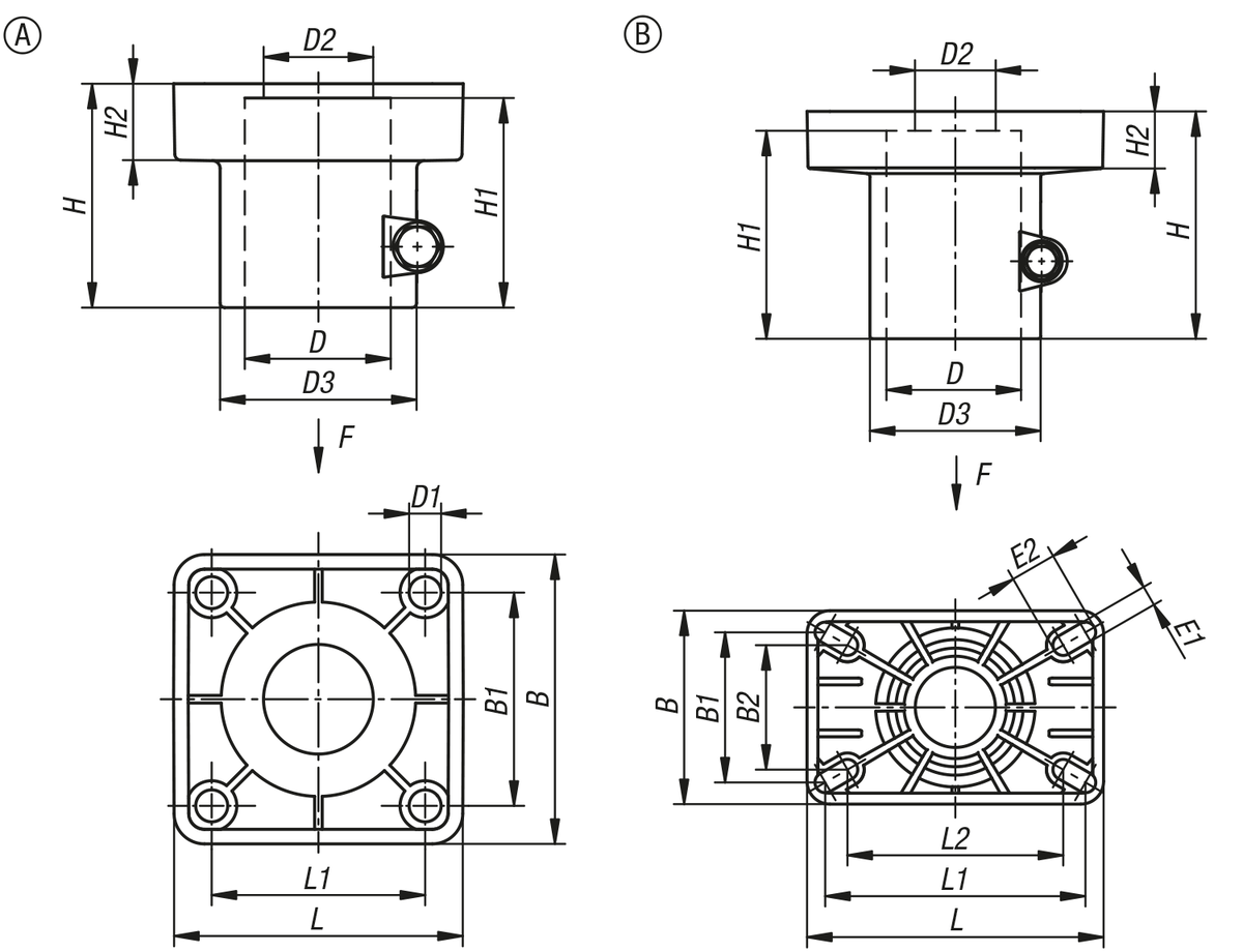 Objednací kód Základní cena bez DPH Objednat D Provedení B B1 B2 D1 D2 D3 E1 E2 H H1 H2 L L1 L2 F max. kN CAD