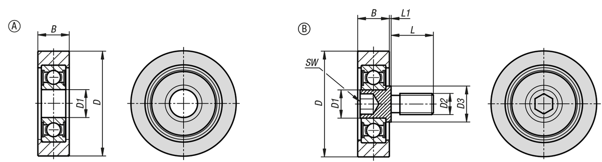 Objednací kód Základní cena bez DPH Objednat D B D1 D2 D3 Provedení Typ provedení Kuličkové ložisko L L1 Radiální zatížení N SW CAD