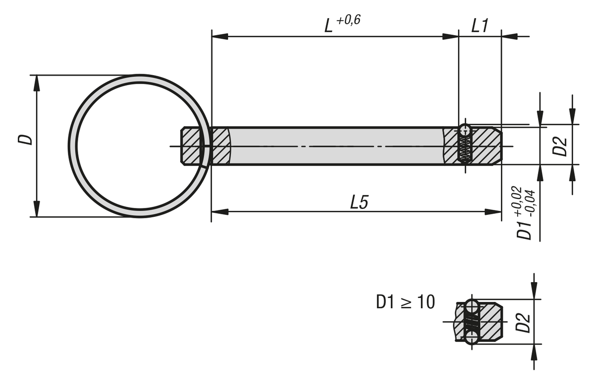 Datový list Kipp Zajišťovací čep z nerezové oceli s klíčovým kroužkem z nerezové oceli