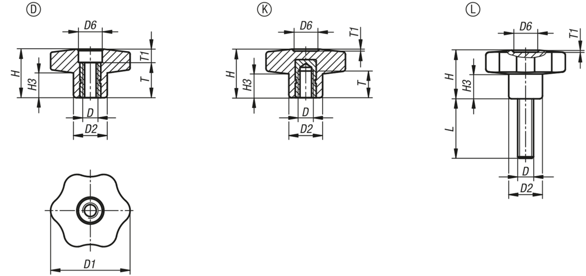 | Objednávací kód | Základná cena bez DPH | Konečná cena s DPH | Objednať | CAD | D1 | H | D | L | Prevedenie | D2 | D6 | H3 | T | T1 |