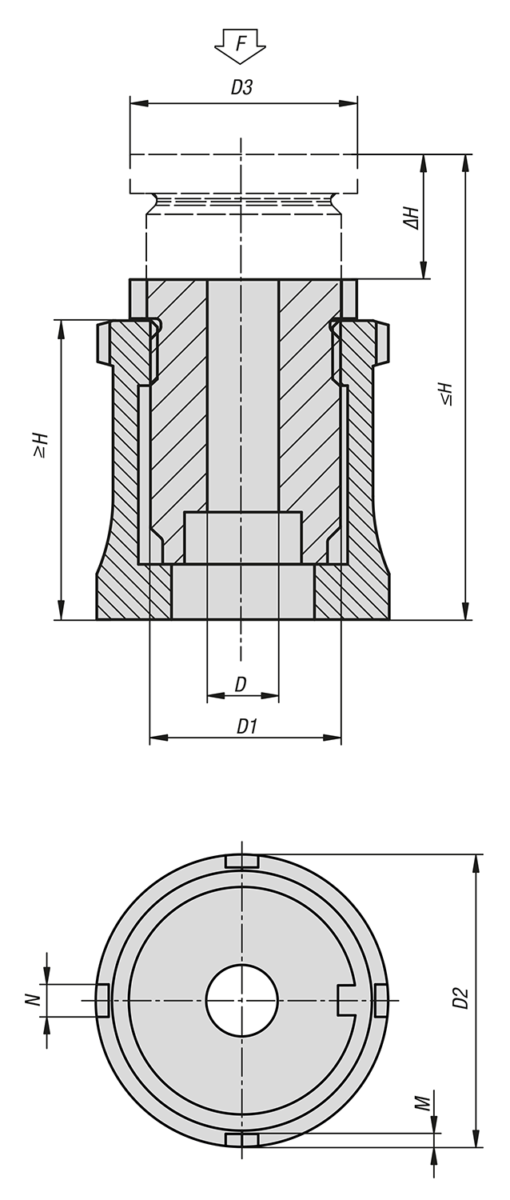 Objednávací kód Základná cena bez DPH Objednať H min. H max. D2 Kontramatice D D1 D3 ?H M N F (kN) pre skrutku CAD