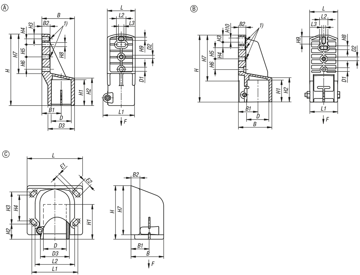 | Objednávací kód | Základná cena bez DPH | Objednať | D | Prevedenie | B | B1 | B2 | D1 | D2 | D3 | H | H1 | H2 | H3 | H4 | H5 | H6 | H7 | H8 | H9 | H10 | E1 | E2 | L | L1 | L2 | L3 | F max. kN | CAD |