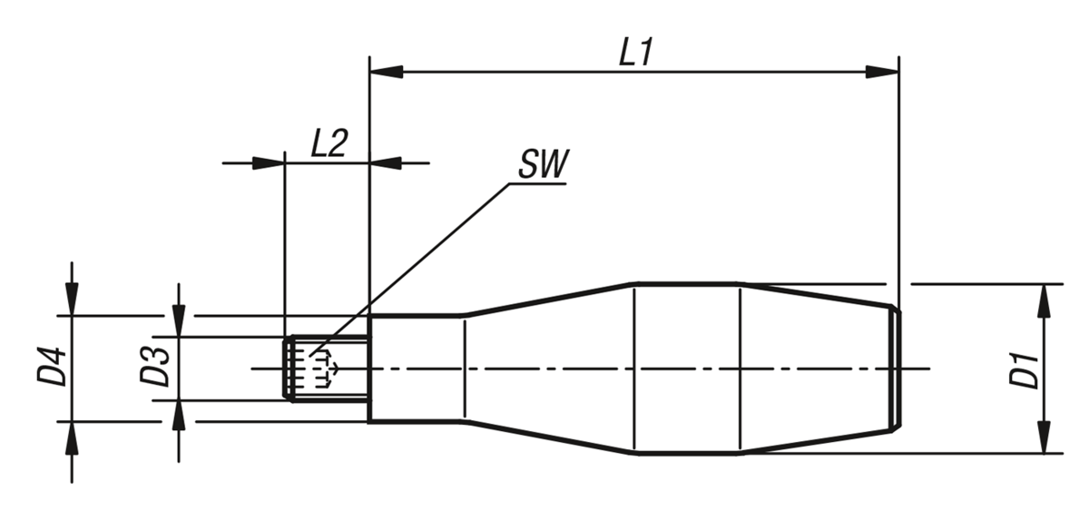 Vajcovité pevné úchyty, priamy tvar, podľa DIN 39
