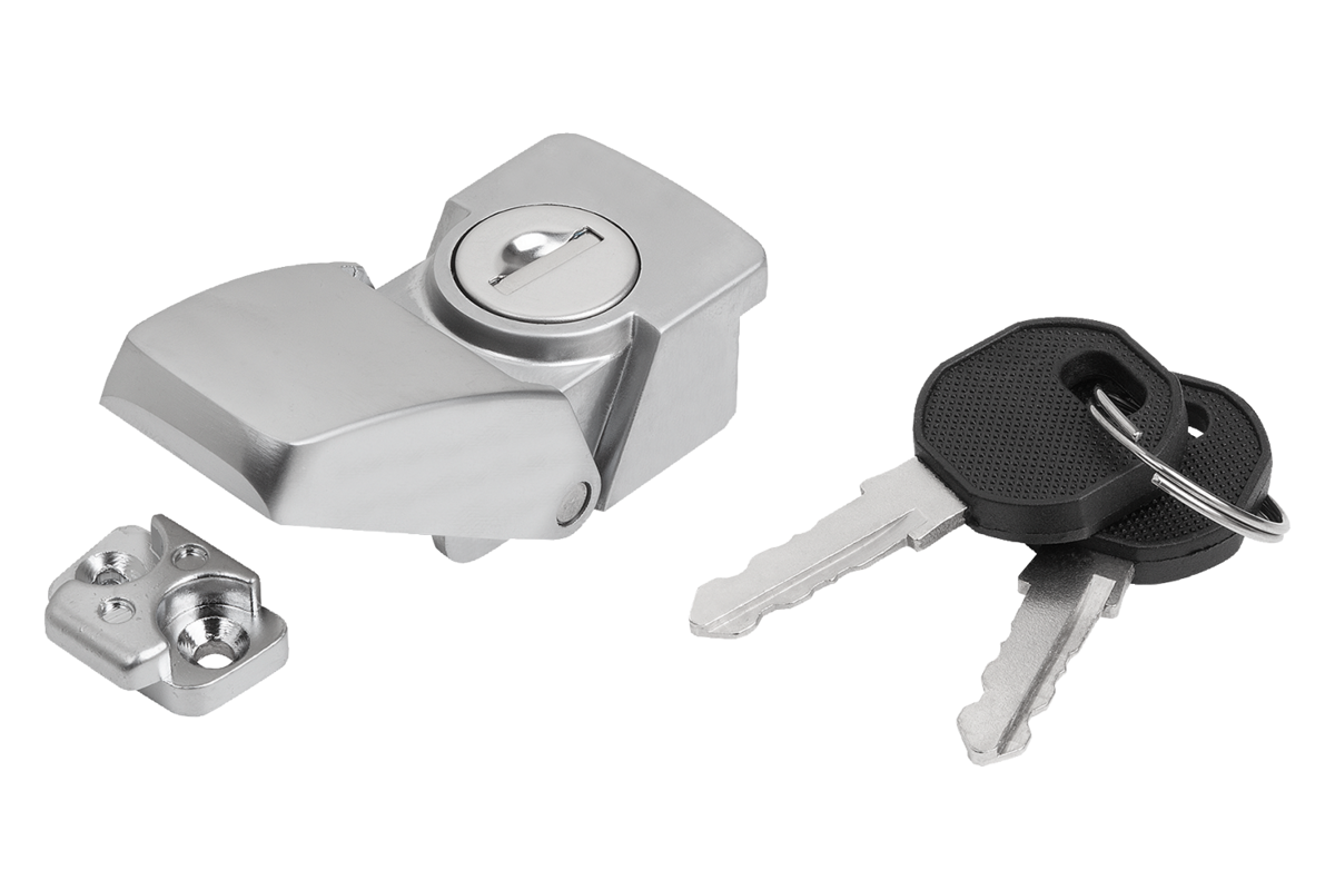 Datový list K2359 Upínací uzávěry ze zinku s plechovým držákem, skryté otvory pro přišroubování
